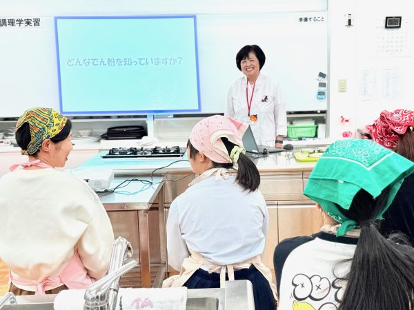など平尾学長の研究分野である「でん粉」についての講義を受け、葛切りを作ってみました。お家でもできますね!