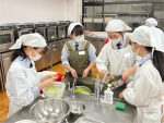 12月19日、愛国学園大学附属四街道高等学校のクッキング部の生徒さん達が短大に来て、調理実習を行いました。部活では自分たちの作りたいレシピを探し、お菓子づくりや調理をみんなでしているそうです。今回は、日頃なかなかできない揚げ物を本学の調理の教員と一緒にチャレンジしました。高校生からのリクエストでメニューは唐揚げになりました♪